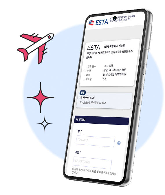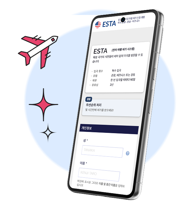 저희는 ESTA 신청을 도와드리는 사설 여행사입니다. 저희의 전문적인 지원과 서류 검토는 정부 웹사이트에서 제공하는 서비스를 뛰어넘습니다.귀하의 데이터는 GDPR 및 국제 개인정보 보호 기준에 따라 안전하게 보호됩니다. 당사는 SSL 암호화를 사용하며 귀하의 개인정보를 절대 공유하지 않습니다.